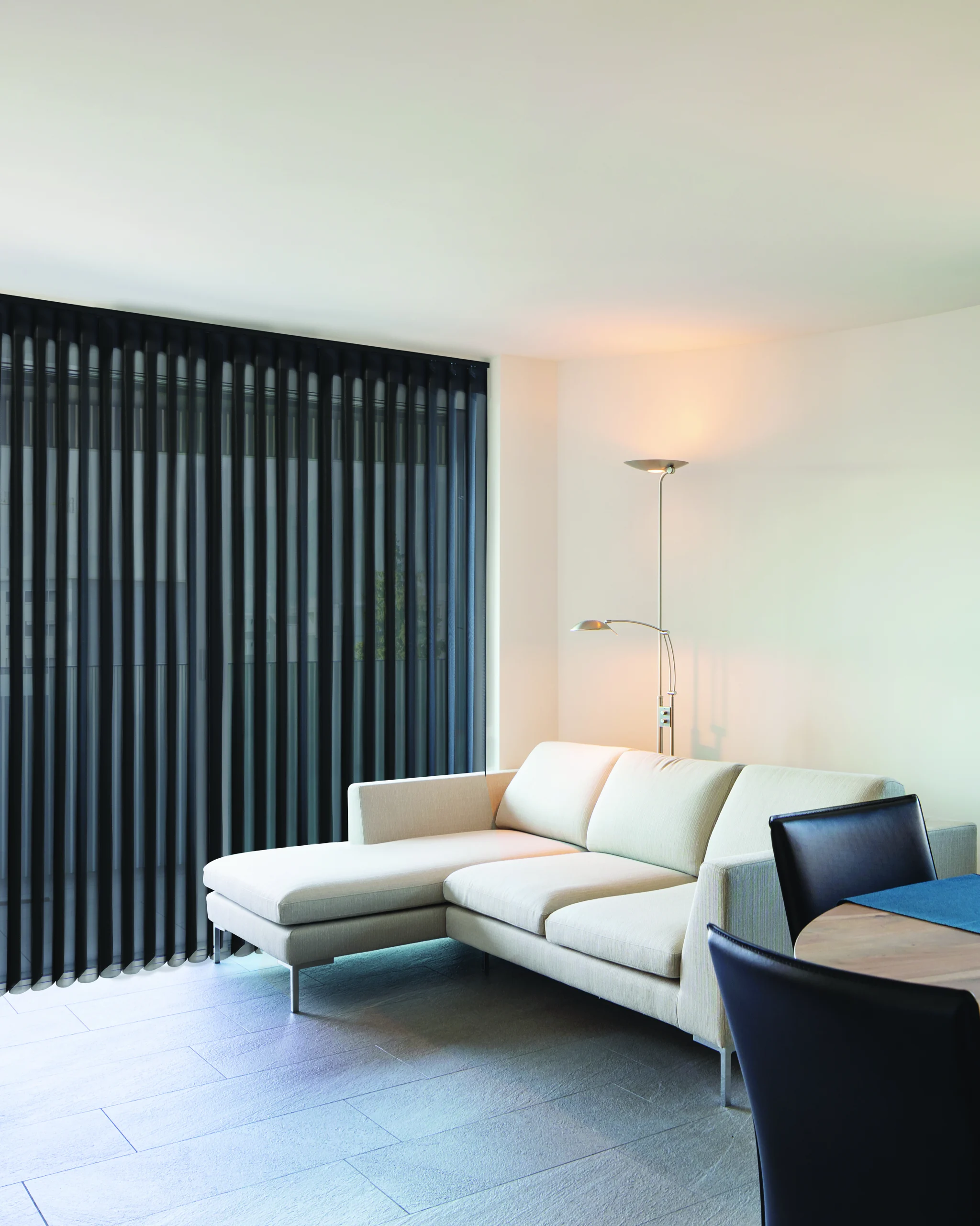 Een grootse stijl voor grote ramen, schuifdeuren en ramen in ongebruikelijke vormen, onze verticale jaloezieën zorgen voor een optimale lichtregulering en privacy in elke kamer van uw huis. Verticale jaloezieën zijn ideaal vanwege de nauwkeurige lichtregeling of bij driehoekige ramen. Ze hebben een strakke uitstraling en worden volledig op maat gemaakt voor ieder interieur. Regel gemakkelijk de gewenste privacy en lichttoetreding in huis door de lamellen in kleine stappen te verstellen. Verkrijgbaar in exclusieve stijlen, duurzame materialen (stof, aluminium of pvc) en geschikt voor een smarthome, dus elektrisch bedienbaar. Er zijn zelfs geluiddempende stoffen beschikbaar! Onze collectie biedt een ruime keuze: van een klassiek huis tot eigentijds wonen, onze luxe materialen en stoffen harmoniëren perfect met elke kamerinrichting.