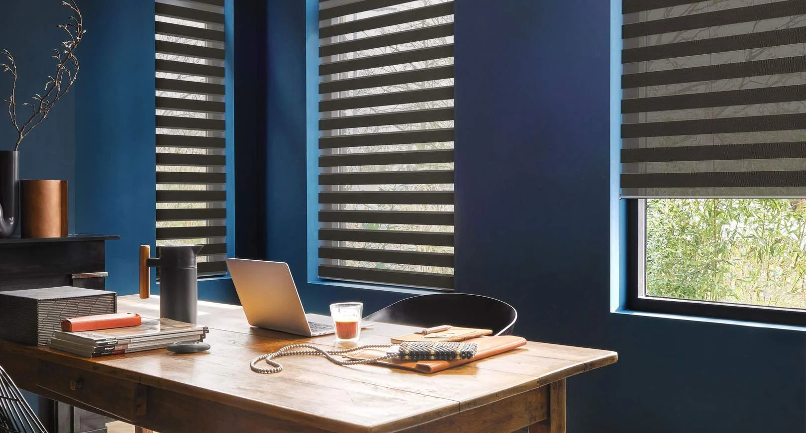 De Duo Rolgordijnen, Twistgordijnen of de Luxaflex “Twist Shades®” hebben een uniek en gepatenteerd ontwerp waarbij twee lagen stof geweven als één stof een zachte uitstraling geven aan je raamdecoratie. De Facette® Shades werken net als rolgordijnen, je kunt ze snel en gemakkelijk omhoog of naar beneden bewegen in zowel geopende of dichte stand. Geniet van je uitzicht, pas moeiteloos de lichtinval aan of creëer gewoon extra privacy wanneer je dat wilt.