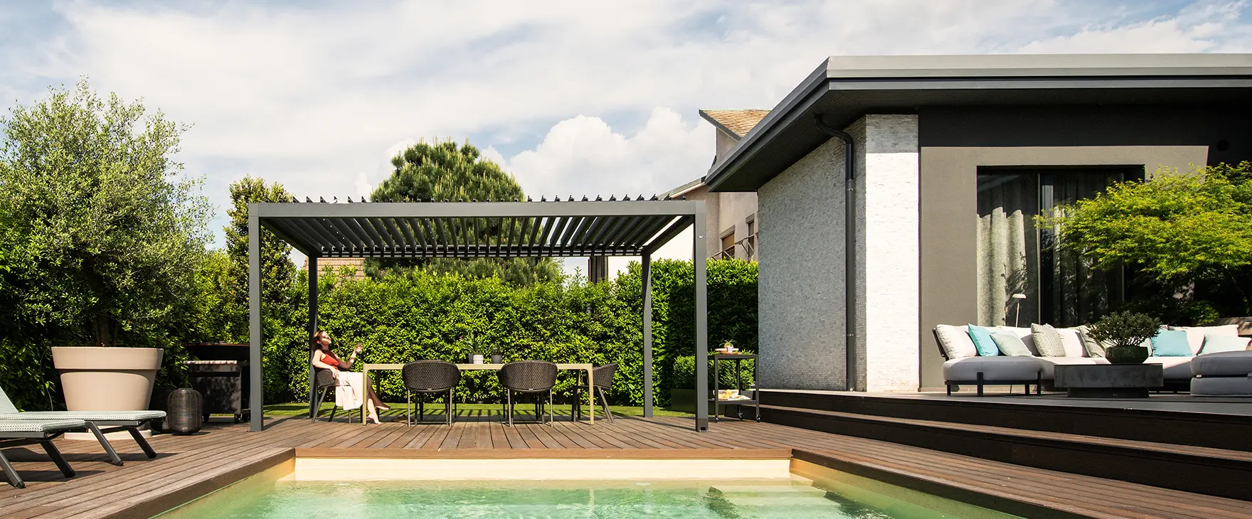 Pergola’s van topmerken zoals Weinor en Gibus combineren strak design met slimme techniek. Denk aan verstelbare lamellen of een schuifbaar doek, waarmee je zelf bepaalt hoeveel zon je binnenlaat. Van een zomerse lunch in de schaduw tot een lange avond buiten met geïntegreerde verlichting en screens: een pergola maakt buitenleven comfortabel én bijzonder.