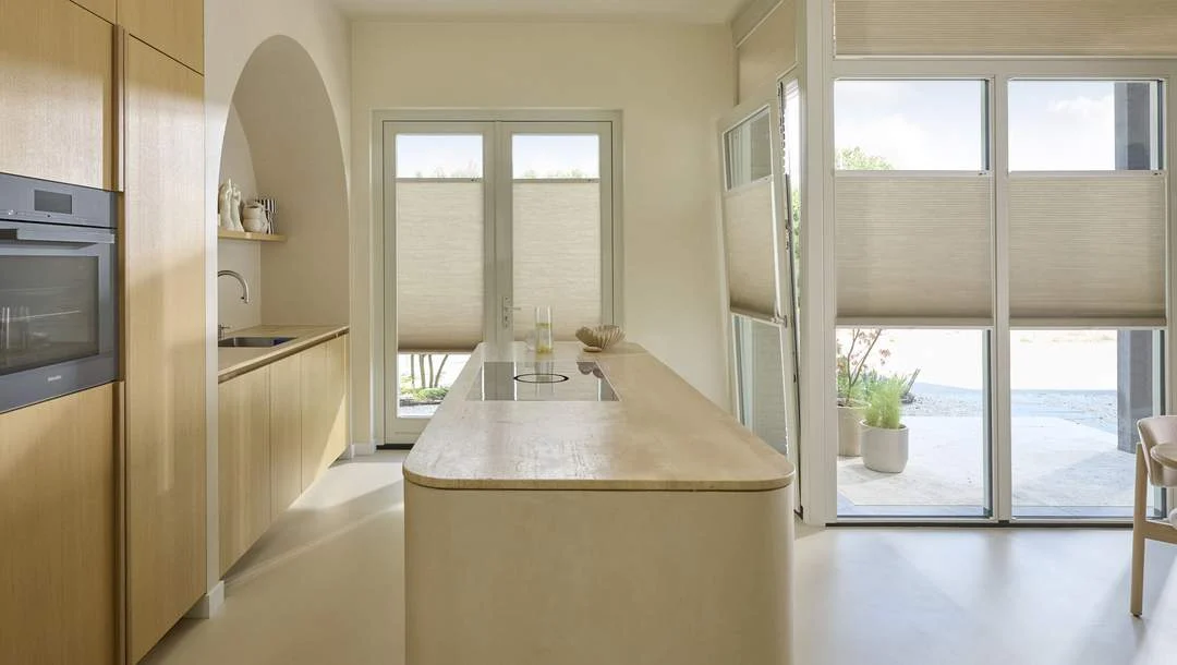 Duette® shades gaan een stap verder dankzij hun unieke honingraatstructuur, die lucht vasthoudt en zorgt voor uitstekende isolatie tegen warmte, kou en geluid. Dit maakt Duette® niet alleen stijlvol, maar ook een energiezuinige keuze die bijdraagt aan een aangenaam binnenklimaat, het hele jaar door.