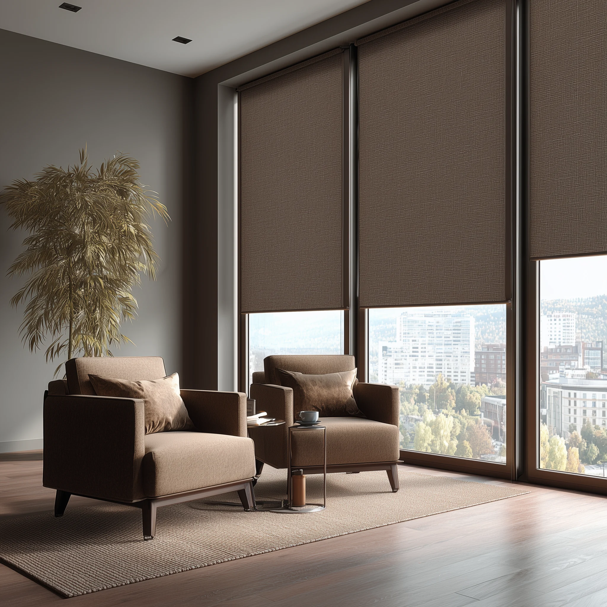 Met rolgordijnen kies je voor een minimalistische en functionele oplossing voor zonwering binnenshuis. Ze regelen het daglicht op een eenvoudige manier, beperken de inkijk en dragen bij aan een rustig en verzorgd interieur. Geschikt voor zowel woonruimtes als kantoren.