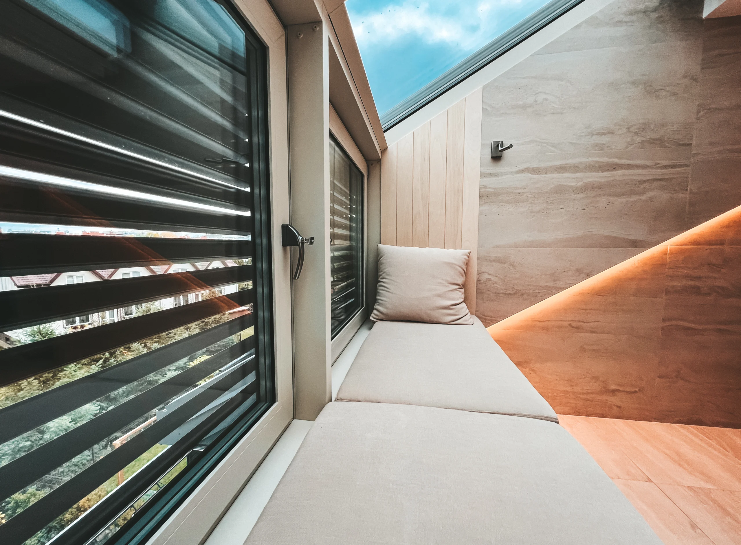 In de gesloten lamellenstand profiteer je van betere isolatie in de winter en extra verduistering, terwijl er toch een subtiele lichtgloed zichtbaar blijft. Dit draagt bij aan een aangenaam en energiezuinig binnenklimaat.